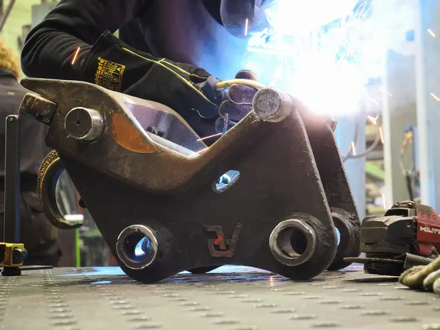 We bewerken en repareren aanbouwdelen zoals bakken, grijpers, kantelstukken, hydraulische snelwissels, frames en cilinders; na slijtageherstel of versteviging weer klaar voor intensief gebruik.